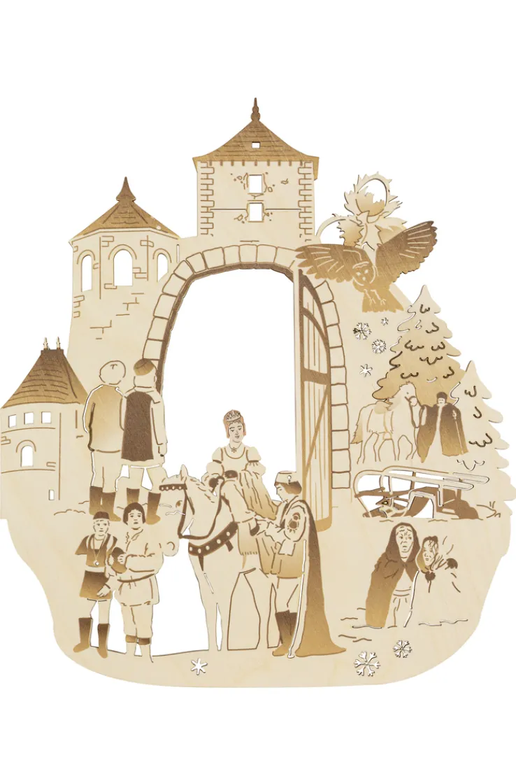 Dieses Wandobjekt aus der Serie DREI HASELNÜSSE FÜR ASCHENBRÖDEL besteht aus Holz und eignet sich für den Innenbereich. Die Maße betragen 27 cm in der Breite, 31 cm in der Höhe und 0,3 cm in der Tiefe. Das Objekt ist mehrfarbig gestaltet und zeigt eine detailreiche, farbenfrohe Motivkomposition, die sich deutlich von monochromen Designs abhebt.