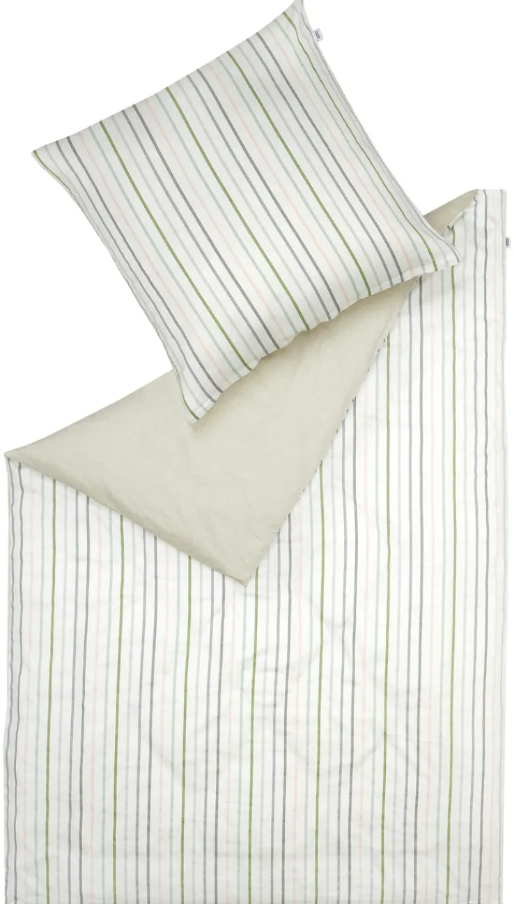 Das Design der Bettwäsche ist mehrfarbig mit einem gestreiften Muster, das in den Farben Grün, Grau und Rosa gehalten ist. Diese Farbkombination verleiht dem Schlafzimmer eine frische und moderne Atmosphäre. Der praktische Reißverschluss erleichtert das Beziehen und Abziehen der Bettwäsche. Dieses Set ist ideal für alle, die Wert auf Qualität und stilvolles Design legen.