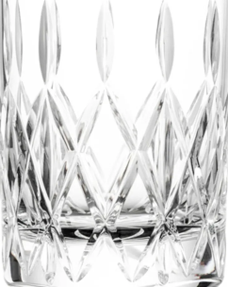 Das Glas zeichnet sich durch ein auffälliges, facettiertes Muster aus, das dem Glas eine besondere Haptik und optische Tiefe verleiht. Diese Gestaltung macht es nicht nur zu einem funktionalen, sondern auch zu einem dekorativen Element auf jedem Tisch. Das Whiskyglas ist lebensmittelgerecht und eignet sich hervorragend für den täglichen Gebrauch oder besondere Anlässe.