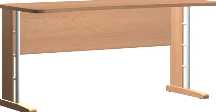 Der 74 cm hohe Schreibtisch POINT vereint ein solides Gestell mit Absetzungen in silberfarbigem Metall mit einer geräumigen Tischplatte mit ABS-Kante. Dadurch ist der Computertisch nicht nur schön anzusehen, sondern auch sehr strapazierfähig. Ob im Homeoffice oder im Jugendzimmer, der klassisch-elegante Schreibtisch bietet ausreichend Platz für Laptop, Arbeitsunterlagen, Bücher und Hefte. Ein weiterer Vorteil des Sekretärs ist seine warme Holzfarbe, mit der er jedem Wohnraum ein gemütliches Ambiente verleiht.