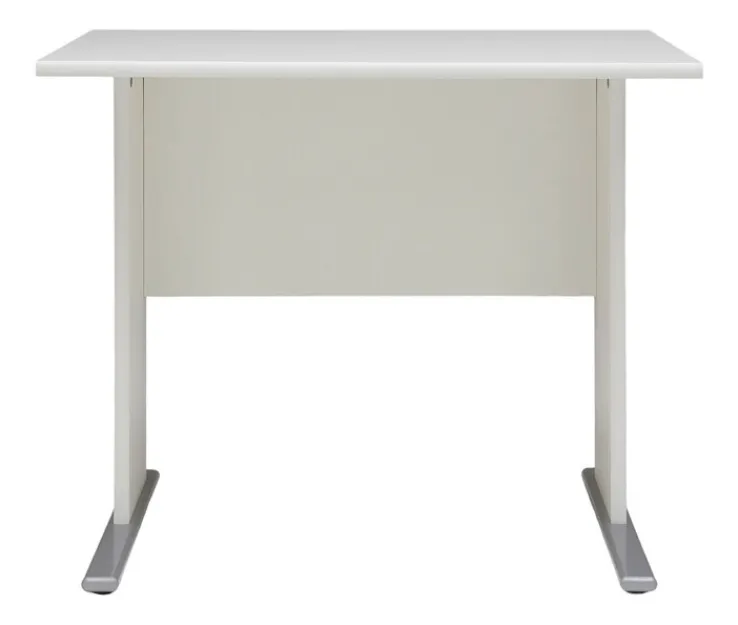 Dieser Schreibtisch der SERIE200 wird inklusive Blende geliefert, hinter der sich die Kabel der Technik auf dem Schreibtisch unsichtbar verstecken lassen. Durch die Melaminbeschichtung ist die Tischplatte leicht zu reinigen, ohne dass die Spanplatte bei Behandlungen mit einem feuchten Tuch quillt. Die weiße Blende befindet sich am hinteren Abschluss des Schreibtischs, wodurch der Nutzer vollständige Beinfreiheit hat und beim Arbeiten bequem sitzen kann.
