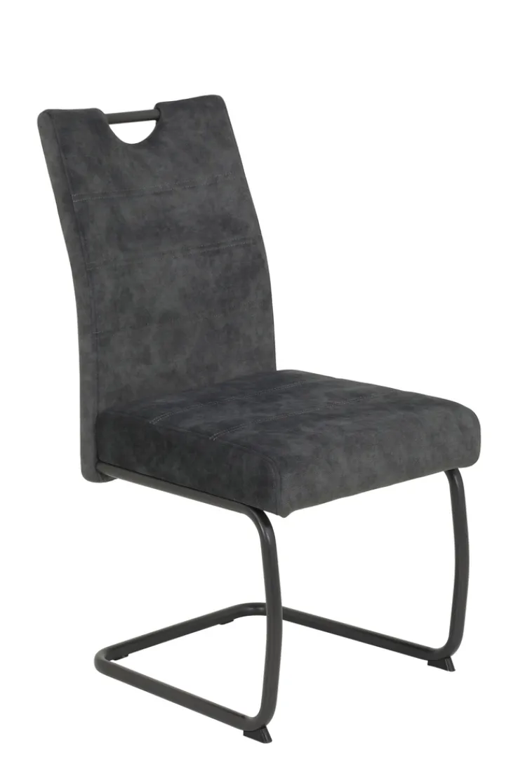 Der Schwingstuhl LAURINA I in praktischen 2er-Set kombiniert das Gestell in Schwarz mit einem kuschelweichen Bezug in der Farbe Anthrazit. Mit seinem modernen Look ist der Stuhl mit XL-Sitzbreite ideal für offene Wohn-Essbereiche geeignet, er sieht jedoch auch in Esszimmer elegant aus.Der Schwingstuhl LAURINA I kombiniert ein Metallgestell aus grau pulverbeschichtetem Rundrohr mit einem Komfortsitz mit Federkorb. Trotz leicht federndem Freischwinger-Gestell lässt sich der Stuhl mit einem Gewicht von maximal 140 kg belasten. Der Schwingstuhl gibt bei Belastung leicht nach und ist dadurch auch bei langem Sitzen bequem._x005f_x000D_