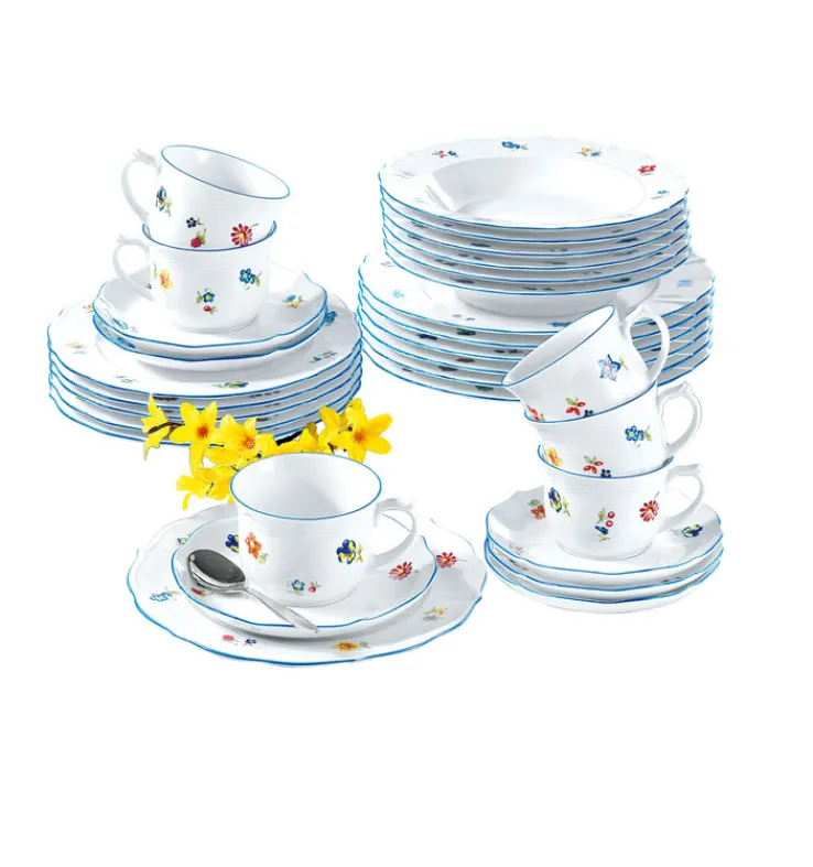 Passend dazu vielleicht auch noch Tassen, Kaffeekanne, Zuckerdose sowie Milchkännchen von SONATE NOSTALGIE und die Kaffeetafel im Landhaus Stil ist perfekt. Das farbenfrohe Streublumendekor auf dem weißen Porzellan der Serie SONATE NOSTALGIE zeugt von moderner Landhaus Romantik. Mit der sommerlichen Frische von Streublumen und dem zarten, blauen Rand verzaubert die Porzellan Serie SONATE NOSTALGIE Sie und Ihre Gäste auf ganz besondere Weise. Dekorativ und alltagstauglich, das ist die Geschirr Serie SONATE NOSTALGIE, die Bereicherung für Ihr Zuhause. Eine Vielzahl an passenden Geschirrteilen der Serie SONATE NOSTALGIE finden Sie in Ihrem Online Shop.