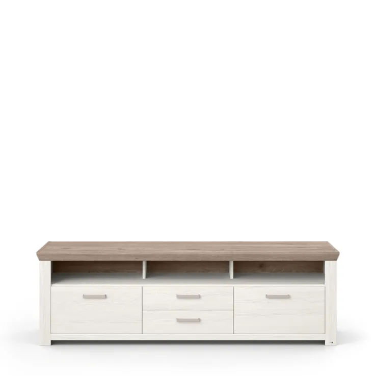 In zwei großen Schubkästen außen und zwei übereinander liegenden Schubladen in der Mitte bietet das Lowboard YORK von set one by Musterring viel Stauraum.