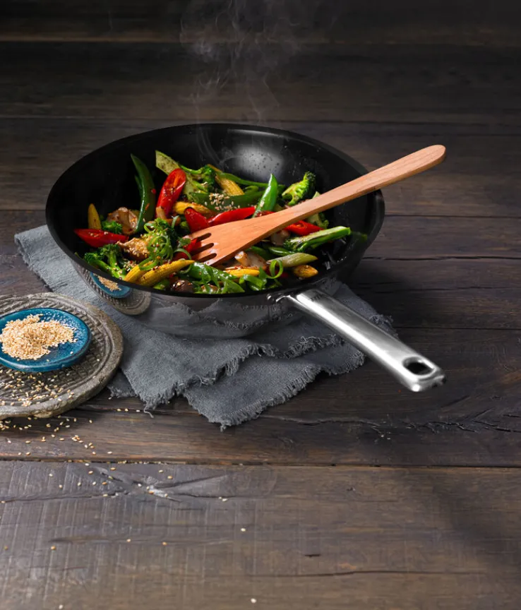 Eine Wok Pfanne ist perfekt zum Braten, Dämpfen, Schmoren, Frittieren und Blanchieren geeignet. Leichte Handhabung und schnelle Zubereitung machen schon das Kochen selbst zum Genuss und geselligem Erlebnis. Das perfekte Kochgeschirr für das Zubereiten schmackhafter und ausgewogener Gerichte. Bei der kurzen Garzeit behalten die Zutaten ihren Geschmack, ihren Biss und ihre vielfältigen Aromen.