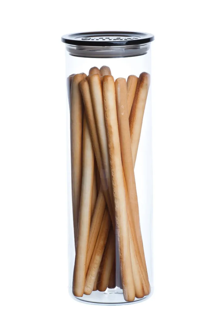 Dieses Vorratsglas SIMAX mit einem Fassungsvermögen von circa zweitausend Milliliter eignet sich perfekt zur Aufbewahrung von Salzstangen, Grissinis, Spaghetti und vielem mehr.