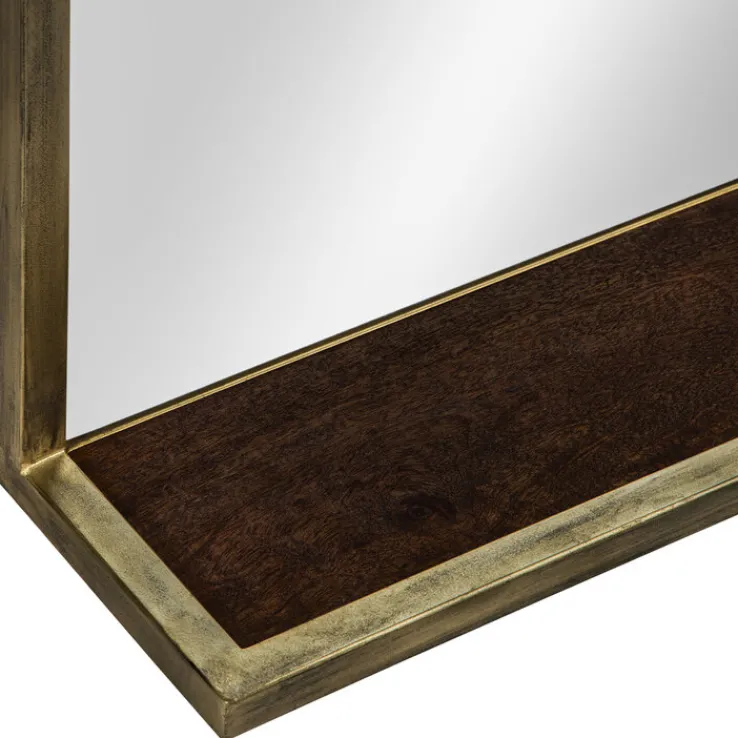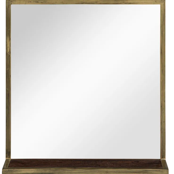 Der Spiegel GOLDEN BATH ist 66 cm hoch und 62 cm. Die Ablage eingerechnet beträgt seine Tiefe 16 cm. Echtholz, Eisen und Glas und die Gestaltung in Dunkelbraun und Antikgold ergänzen sich perfekt.