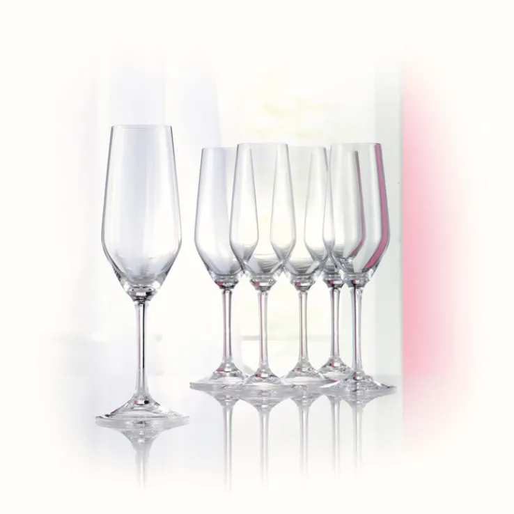 Das Besondere an diesen Champagnergläsern ist ihr leicht bauchiges Design, das ihnen einen modernen Stil verleiht. Das Kristallglas sorgt für eine edle Optik und lässt das Getränk besonders gut zur Geltung kommen.