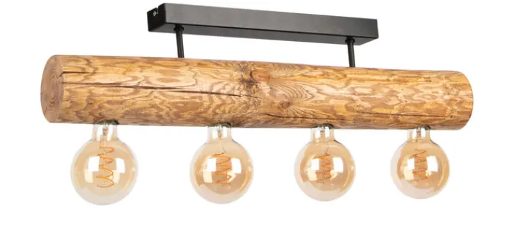 Die aparte Deckenleuchte ist 9,5 cm breit und 18,5 cm hoch. Der Kontrast der Farben Tiefschwarz und Naturbraun sieht ausgesprochen attraktiv aus. Dazu passen besonders schicke AGL/Retrofit-Leuchtmittel, da diese offen zu sehen sind. Sie werden direkt an dem gebeizten Kiefernstamm befestigt. Beim Kauf dieser Leuchtmittel ist auf die Fassung E27 zu achten. Der Gesamtenergieverbrauch liegt im Übrigen bei 240 Watt.