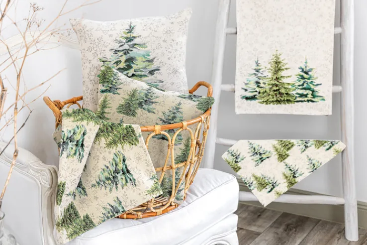 Das Tischband NEOTERIC FOREST der Marke SPRÜGEL ist ideal für festliche Anlässe oder als dekorativer Akzent im Wohnbereich. Das attraktive Design mit winterlichen Tannenbäumen fügt sich harmonisch in verschiedene Tischdekorationen. Der Tischläufer ist eine stilvolle Möglichkeit, den Esstisch aufzuwerten und eine einladende Atmosphäre zu schaffen. Er kann als zentrales Element auf einer Tischdecke oder direkt auf der Tischoberfläche verwendet werden und ist auch für Sideboards geeignet.