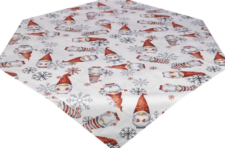 Die quadratische Tischdecke GNOMOS SNOWFLAKE von SPRÜGEL in den Farben Rot und Grau misst 85 x 85 cm. Ihr wunderbares Design mit Wichteln und Schneeflocken erinnert daran, wie reizvoll der Winter sein kann.