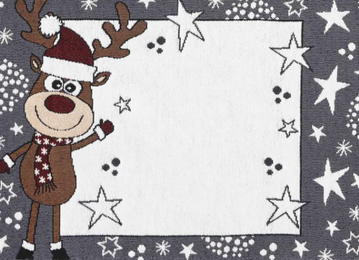 Das Design des Sets zeigt ein fröhliches Rentiermotiv, das in den Farben Grau, Beige und Braun gehalten ist. Der Hintergrund ist in einem dezenten Grauton gestaltet, der durch weiße Sterne und Schneeflocken ergänzt wird. Dieses winterliche Motiv verleiht jedem Tisch eine festliche Atmosphäre. Mit einem Gewicht von nur 0,13 kg ist das Set leicht zu handhaben und ideal für den täglichen Gebrauch oder besondere Anlässe.