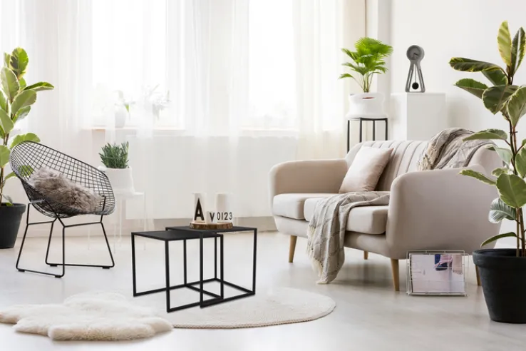 Der minimalistische Style zieht mit den aparten Tischen ein, die sich hier im praktischen Set präsentieren. Der kleinere Tisch mit Maßen von 35 x 35 x 35 cm lässt sich halb unter das größere Modell mit den Maßen 40 x 40 x 40 cm schieben. Dadurch wird der angesagte Industrial-Look lebendig. Auch einzeln können die Möbelstücke mit einer Tischplatte aus einer Holznachbildung und einem Metall-Vierfußgestell begeistern.
