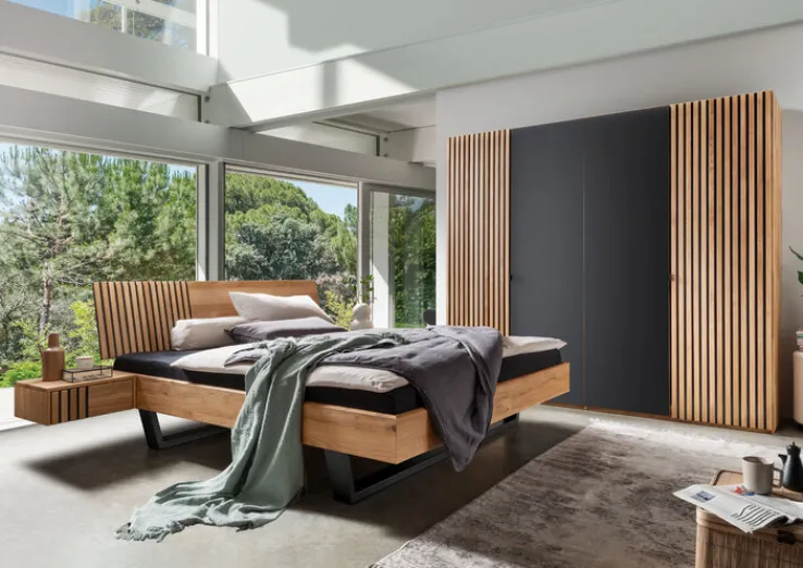 Das moderne TRAUMWERKSTATT Bettgestell MANHATTAN bietet eine Liegefläche von 180 x 200 cm . Es kombiniert moderne Holzkufen in Anthrazit mit einem Gestell aus stabverleimtem Wildeiche Massivholz und zieht mit seinem eleganten Design alle Blicke auf sich. Durch die geölten Oberflächen ist das Bettgestell nicht nur strapazierfähig, auch die natürliche Maserung des Holzes kommt perfekt zur Geltung. Ein weiterer Vorteil des Gestells ist die Bettrahmenhöhe von 45 cm, die für einen komfortablen Einstieg sorgt.