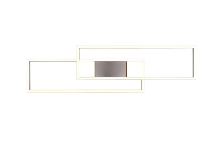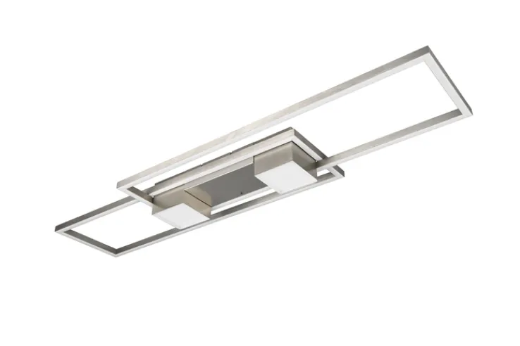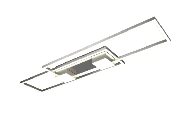 TRIO Leuchten aus Arnsberg hat mit der LED Deckenleuchte ALBANY ein Kunstwerk für den gehobenen Anspruch geschaffen. Sie ist erstklassig mit hochwertigen Materialien verarbeitet. Die Basis bildet das nickelfarbige, silber-glänzende Grundgerüst aus zwei asymmetrisch angeordneten Rechtecken. Mittig befindet sich ein Leuchtschirm aus robustem Kunststoff, in dem 1x bis 37 Watt LED-Leuchtmittel mit bis zu 4300 Lumen und zwischen 2700 und 6500 Kelvin per mitgelieferter Fernbedienung dimmbar sind. Zusätzlich integriert die ALBANY Deckenleuchte Dip Switch, Memory- sowie Nachtlicht-Funktion und eine Lichtfarbverstellung CCT. Sie ist ideal für Küchen, Wohnzimmer und überall dort, wo Wert auf einen exklusiven Hingucker gelegt wird und nur das Beste gut genug ist.