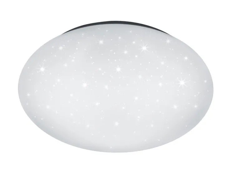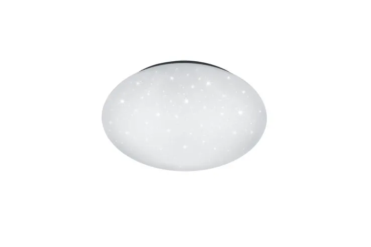 Die TRIO LED Deckenlampe PAOLO mit Funktion wird inklusive Leuchtmittel geliefert. Sie zeigt einen Sternenhimmel. Ihr Durchmesser beträgt 37 cm. Sie besteht hauptsächlich aus weißem Kunststoff. Ihre Höhe liegt bei 8,5 cm.