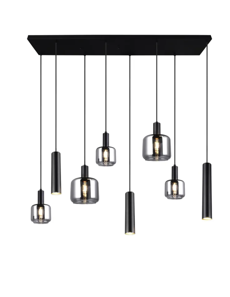 TRIO Retrofit Balkenpendel MATARO 8-flg schwarz /smoke