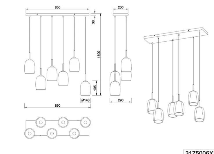 TRIO Retrofit Balkenpendel TRS BARRET 89 cm schwarz /rauchfarbig