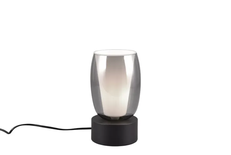 Die TRIO Retrofit Tischlampe TRS BARRET in den Farben schwarz/ rauchfarbig ist 24 cm hoch und zieht mit ihrem extravaganten Look alle Blicke auf sich. Durch das elegante Design harmoniert die Tischleuchte mit vielen Einrichtungsstilen und macht auf Sideboards und Beistelltischen eine tolle Figur.
