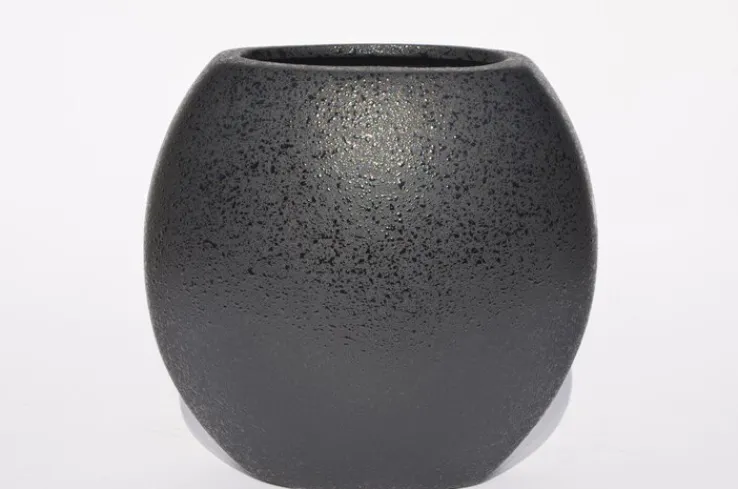 Die elegante Vase STRUKTUR in der Farbe schwarz-matt macht ihrem Namen alle Ehre und ist ein dekoratives Accessoire für moderne oder klassische Einrichtungen. Durch ihre ovale Form und die strukturierten Oberflächen ist die etwa 16 cm hohe Blumenvase ein Blickfang für den Wohn- oder Esszimmertisch. Platziert auf heller Tischwäsche kommt die schöne Keramikvase besonders gut zur Geltung. Die Vase ist für Trockenblumen oder farbenfrohe Blumensträuße geeignet und sorgt für eine wohnliche Atmosphäre.