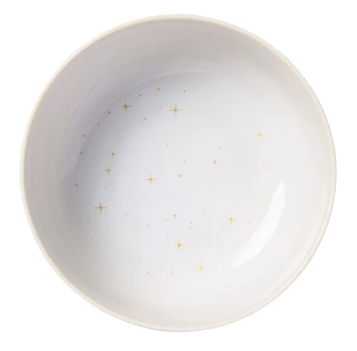 Wenn schon am Frühstückstisch weihnachtliche Stimmung aufkommt, werden die Festtage unvergesslich: Die Bowl WINTER GLOW von Villeroy & Boch Weihnachten ist aus weißem/beigem Porzellan gefertigt und zeigt in goldfarbigem Druck ein Stern-Schneeflocken-Motiv. Die Schale im Pottery-Stil wirkt luftig leicht wie eine Schneewehe, mit ihrem Durchmesser von 15 Zentimetern und einer Höhe von 6,5 Zentimetern eignet sie sich als Servierschale hervorragend.