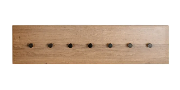 Die Garderobe ist aus mitteldichter Faserplatte mit einer lackierten Oberfläche gearbeitet. Die Holznachbildung fasziniert im Dekor Eiche. Die schwarz lackierten Haken ergänzen dieses Dekor farblich perfekt. Das Modell wiegt nur 1,90 Kilogramm. Daher hängt es auch mit sieben Kleidungsstücken sicher an jeder Wand im Haus. Die Garderobe ist nämlich auch für Gäste- und Kinderzimmer eine gute Wahl.