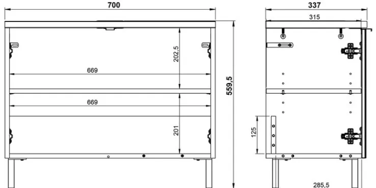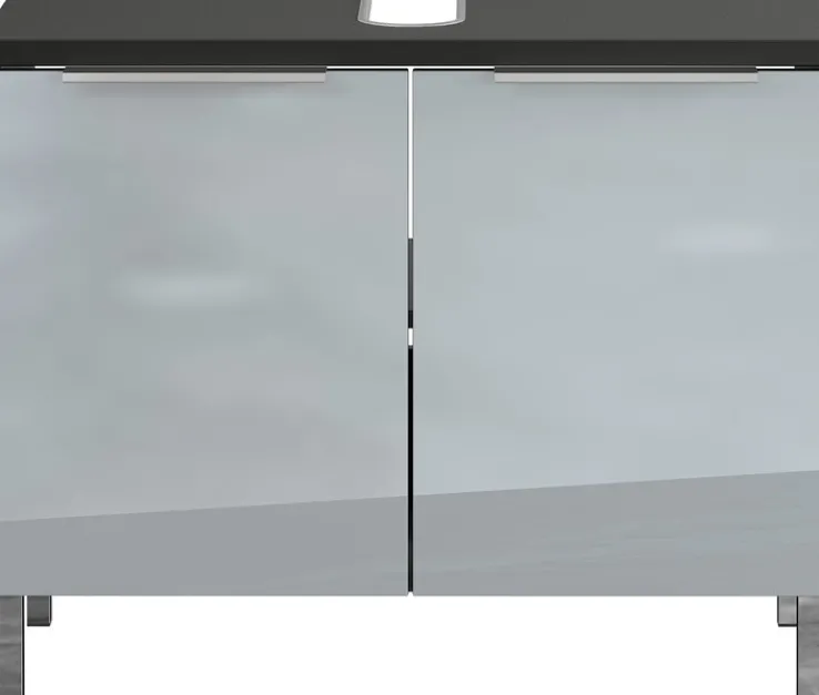 Der Unterschrank besteht aus robustem Metall, was Langlebigkeit und Stabilität gewährleistet. Im Inneren befindet sich ein Einlegeboden, der zusätzlichen Stauraum für Ihre Badezimmerutensilien bietet. Die klaren Linien und das schlichte Design machen diesen Schrank zu einer vielseitigen Ergänzung für jedes Badezimmer. Die chromfarbenen Details verleihen dem Möbelstück einen Hauch von Eleganz, während die glatte Oberfläche leicht zu reinigen ist.