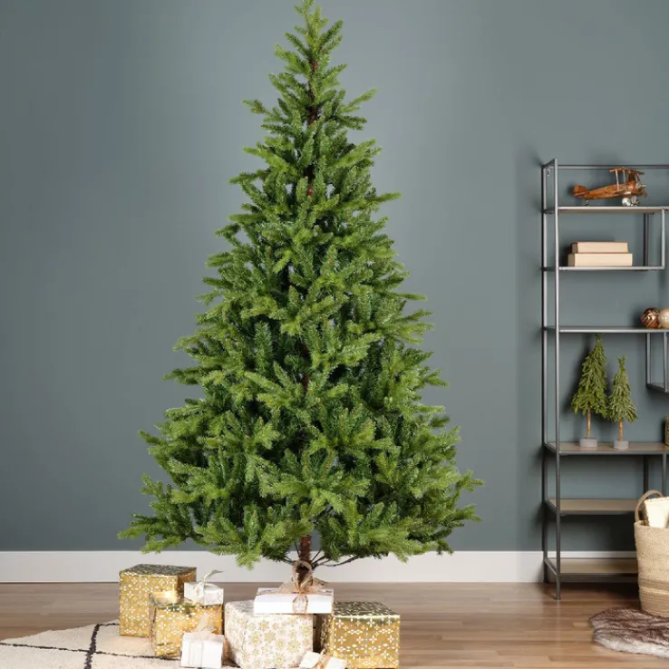 Das Modell präsentiert sich in einem natürlichen Grünton, der auf den dichten, realistisch gestalteten Nadeln gut zur Geltung kommt. Die feinen, unterschiedlich langen Zweige sorgen für eine gleichmäßige, voluminöse Optik und geben dem Baum ein naturgetreues Erscheinungsbild.