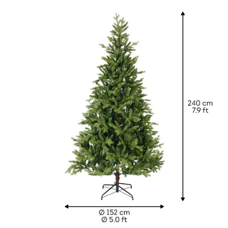 Dieser künstliche Weihnachtsbaum ist 240 cm hoch, 152 cm breit und 152 cm tief.