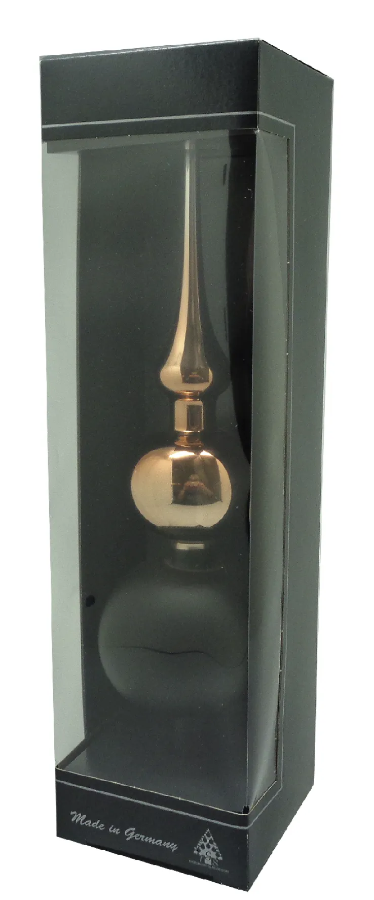 Die Doppelspitze ist aus solidem Glas gefertigt. Die Oberflächen des Glases sind außen lackiert und satiniert. Die Doppelspitze ist ein Qualitätsprodukt aus Deutschland und für Räume im Innenbereich geeignet.