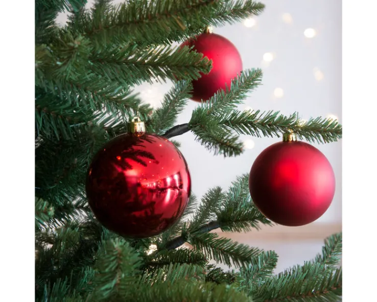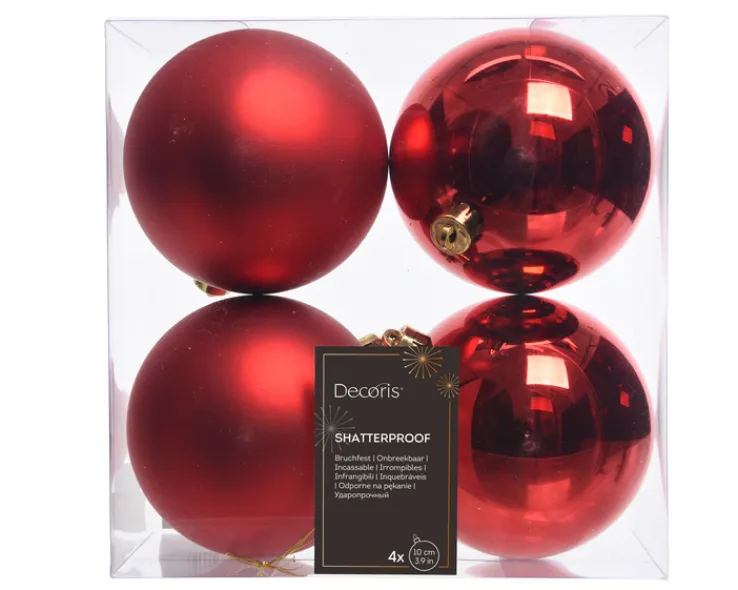 Dieser Weihnachtskugeln MIX enthält vier zauberhafte Kugeln in Rot, die jeweils einen Durchmesser von 10 cm besitzen. Zwei Kugeln begeistern mit einer glänzenden Oberfläche, die anderen beiden sind matt.