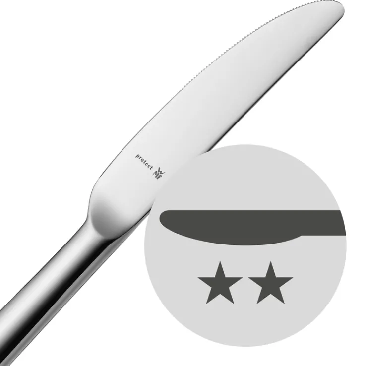 Das WMF Besteck-Set KINEO ist 30-teilig und besteht aus robustem und pflegeleichtem Edelstahl. Die silberfarbige Ausführung ist zeitlos schick und fügt sich stimmig in die übrige Dekoration in Küche oder Esszimmer ein.