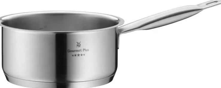 Wer gerne und regelmäßig kocht, braucht verschiedene Töpfe, wobei sich für die Standardausstattung ein paar Grundformen bewährt haben. Diese kombiniert WMF in unterschiedlichen Größen zu einer vielfältigen Auswahl, wobei Fleisch- oder Bratentöpfe in keinem Set fehlen dürfen. In den Fleischtopf passt alles rein, was zum Kochen viel Flüssigkeit braucht, da sein Rand besonders hoch ist, spritzt beim Braten von Fleisch nichts heraus und auch Nudeln, Kartoffeln und Gemüse nimmt er ohne Probleme auf. Der Bratentopf ist eine Kombination aus Pfanne und Fleischtopf, der Rand ist höher als bei der Pfanne, somit spritzt beim Braten kaum Fett heraus. Zugleich ist der Rand niedriger als beim Fleischtopf, damit die Flüssigkeit schneller verdampft und Sie das Fleisch/Gemüse problemlos wenden können. Gefertigt aus pflegeleichtem und robustem Cromargan®, sind alle Töpfe mit einem TransTherm® Allherdboden ausgestattet und so für alle Herdarten inklusive Induktion geeignet.