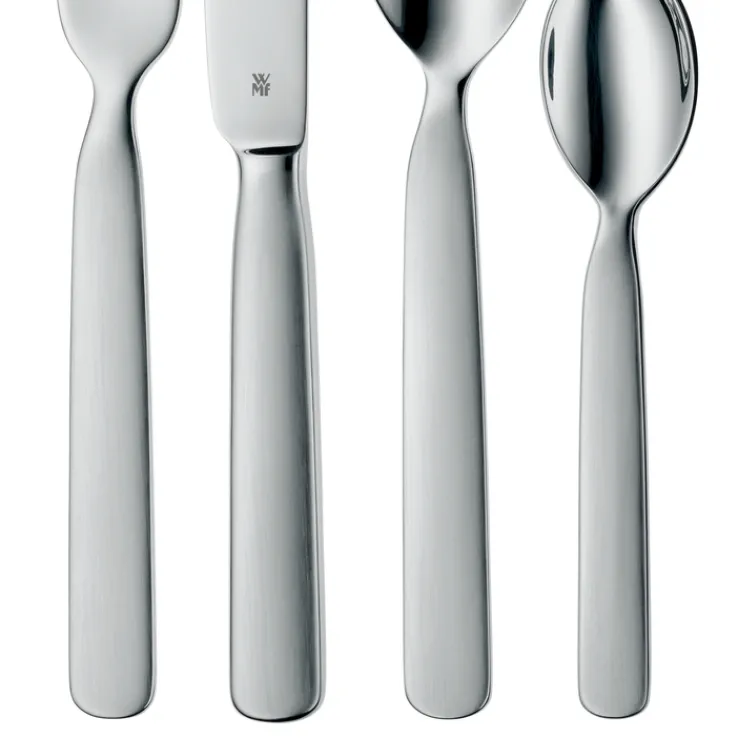 Die Traditionsmarke WMF, die über 170 Jahre Erfahrung mitbringt, sorgt hier für ein hochwertiges Besteckset für Kinder. Positive Eigenschaften sind die geschmacksneutrale und säurebeständige Formel sowie die Farbechtheit und Langlebigkeit, auch bei täglichem Einsatz. Die hohe Qualität ergibt sich durch den Einsatz von Cromargan-Edelstahl. Die vier Produkte liegen bequem in der Hand und erlauben ein komfortables Handling beim Genuss vom Frühstück bis zum Abendessen.