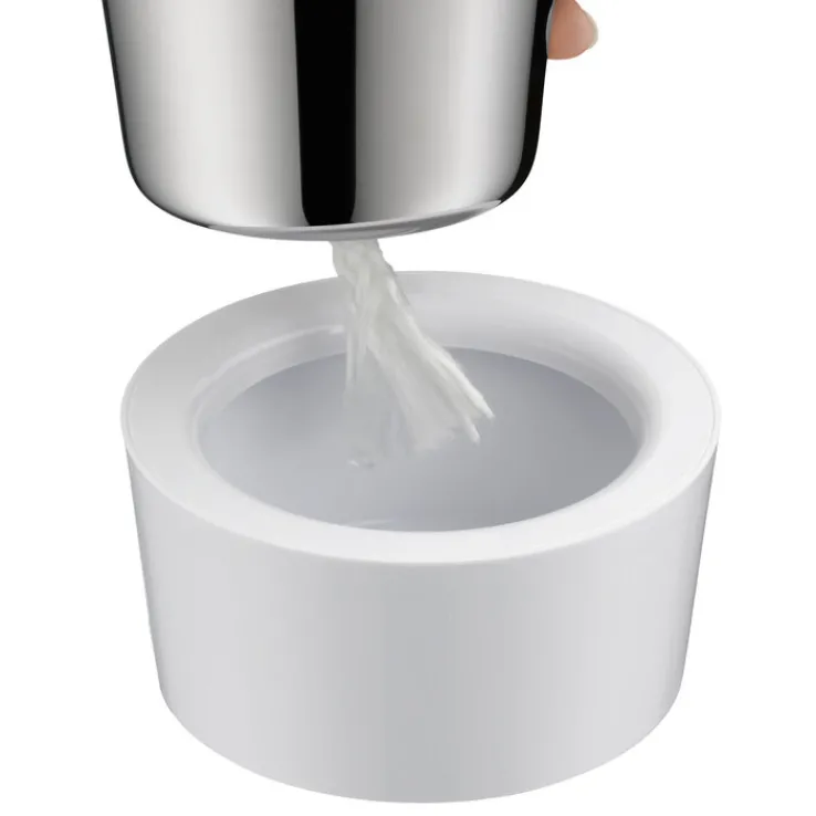 Der WMF Kräutergarten besteht aus Übertopf, Wassertank und Glasfaserdocht. Der silberfarbige Cromargan Edelstahl 18/10 ist rostfrei und poliert.