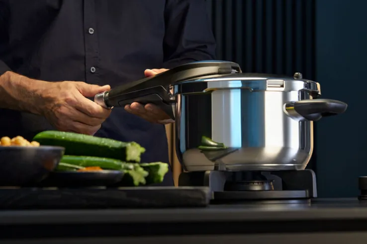 Der Schnellkochtopf PERFECT PREMIUM von WMF hat ein Fassungsvermögen von 6500 ml und ist aus hochwertigem Cromargan Edelstahl hergestellt. Der silberfarbige Topf überzeugt durch höchste Funktionalität und Qualität aus Deutschland.