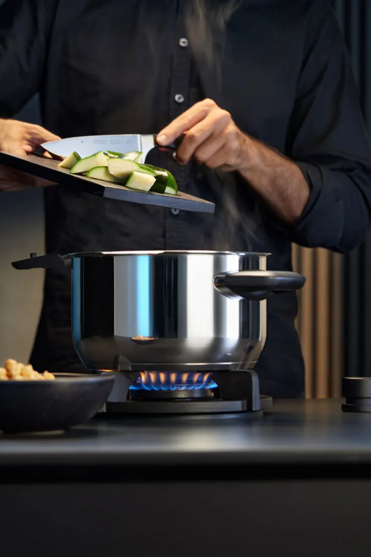 Der Topf erleichtert die Zubereitung von Gerichten durch einen TransTherm-Allherdboden und eine Innenskalierung. Das Kochen in der Küche wird zum Erlebnis und der Kochtopf trägt zu einer professionellen Ausstattung bei. Er ist spülmaschinengeeignet, säurefest, rostfrei und für alle Herdarten inklusive Induktion geeignet und begeistert somit durch seine Vielseitigkeit. Die Anwendung ist einfach und unkompliziert. Die Oberfläche ist in Hochglanz poliert und sieht somit in jeder Küche schick und elegant aus.