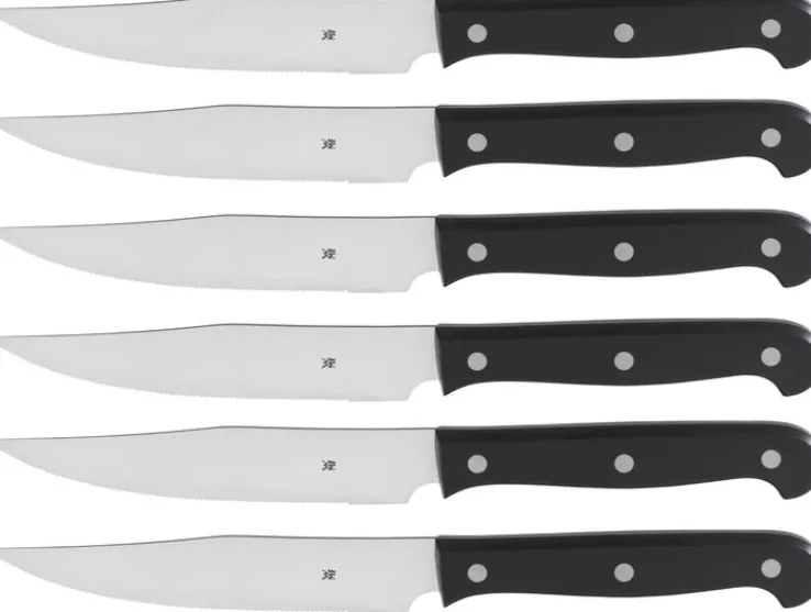Das WMF Steakmesser-Set KANSAS ist das ideale Besteck für einen perfekten Grillabend mit Freunden oder mit der Familie. Das 6-teilige Messer-Set aus Kunststoff und edlem Stahl schneidet Steaks, Braten, Koteletts oder auch Roastbeef zart wie Butter. Die gut ausbalancierten Messer sind leicht in der Handhabung und bleiben durch den speziellen Schliff lange scharf. Durch die tolle Verpackung ist das hochwertige Messer-Set auch als Geschenk geeignet.
