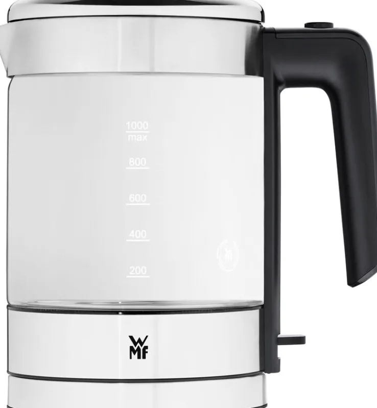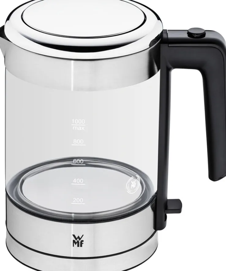 Der kleine Wasserkocher aus der beliebten Serie KÜCHENMINIS von WMF überzeugt durch sein elegantes Design und ist besonders praktisch. Im Handumdrehen sind bis 1000 ml heißes Wasser bereitet, das zum Kochen von Tee, Kaffee oder auch für eine Suppe geeignet ist. Durch die integrierte Kochstoppautomatik mit Deckelverriegelung ist das Kochen von Wasser kinderleicht und sicher. Ein Trockenlauf- und Überhitzungsschutz ist ebenfalls eingebaut.