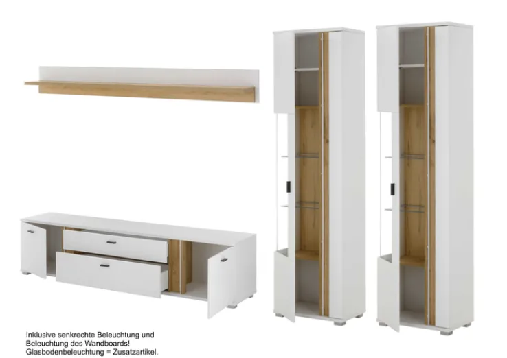 Setartikel: jaAnzahl Teile im Set: 4 Stk.Breite Setartikel 1: 55 cmHöhe Setartikel 1: 200 cmTiefe Setartikel 1: 35 cmSetartikel-Inhalt 1: VitrineAnzahl Setartikel-Inhalt 1: 2 Tiefe Setartikel 2: 45 cmBreite Setartikel 2: 200 cmHöhe Setartikel 2: 45 cmSetartikel-Inhalt 2: LowboardAnzahl Setartikel-Inhalt 2: 1 Länge Setartikel 3: 200 cmTiefe Setartikel 3: 18 cmHöhe Setartikel 3: 20 cmSetartikel-Inhalt 3: WandboardAnzahl Setartikel-Inhalt 3: 1 Anzahl Schubkästen inklusive: 2Anzahl Beleuchtungen inklusive: KeineAnzahl Drehtüren inklusive: 4Griffe inklusive: ja