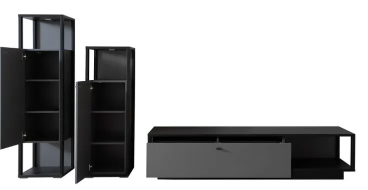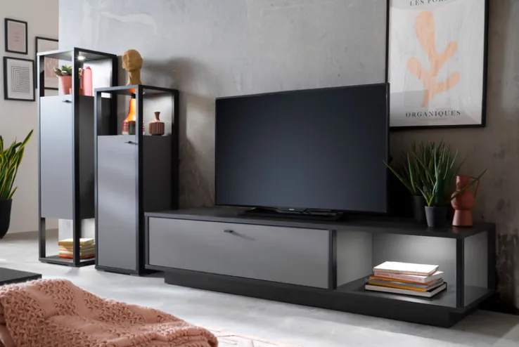Die 3-teilige Wohnwand LUXOR III in der modernen Farbkombination Royal Grau/Anthrazit schenkt dem Wohnzimmer einen top modernen Look. Zudem bietet die Wohnwand umfangreichen Stauraum für Alltagsgegenstände sowie Ausstellungsflächen.