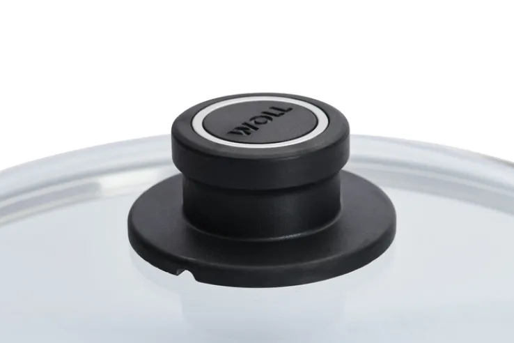 Der WOLL Sicherheitsglasdeckel besteht aus einem neuartig gehärteten Spezialglas. Dadurch ist er nicht nur extrem leicht, sondern auch besonders bruchfest, hitzebeständig bis 250 °C sowie spülmaschinenfest. Im Deckelknopf ist eine permanente Entlüftung integriert. Zudem ist der Deckel mit einem schützenden Edelstahlrand ausgestattet, der dafür sorgt, dass Kondenswasser in den Topf zurückläuft. Der Pfannendeckel ist die perfekte Ergänzung für die TITANIUM NOWO Grillpfanne mit den Maßen 28 x 28 cm.