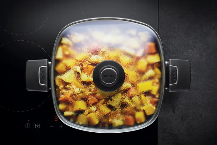 Der WOLL Glasdeckel aus Sicherheitsglas hat eine Größe von 28 x 28 cm und ist für Töpfe und Pfannen mit identischen Seitenlängen geeignet. Mit ihm ist es möglich Gerichte besonders energiesparend zu erhitzen.