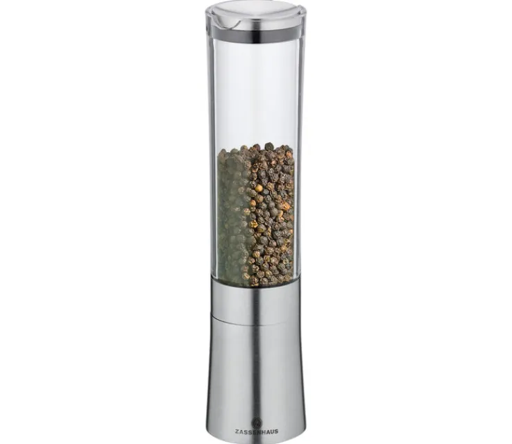 Die ZASSENHAUS Pfeffermühle KOBLENZ ist mit ihren funktionalen Vorzügen aber nicht nur ein elegantes Accessoire für den Esszimmertisch, sondern ein überaus praktischer Küchenhelfer für das wohldosierte Würzen von Speisen in der Küche oder auf dem Teller. Das Gehäuse aus stabilem Metall wird durch einen zylindrischen Glaskörper ergänzt, durch den der aktuelle Füllstand der Pfefferkörner mit seiner ästhetischen Optik jederzeit gut im Blick behalten werden kann. Der Deckel dieser Pfeffermühle hat einen modernen Magnetverschluss. Im Mahlwerk der hochwertigen ZASSENHAUS Pfeffermühle KOBLENZ kommt dauerhaft ohne Nachschärfen nutzbare Hochleistungskeramik zum Einsatz. Damit ist diese Pfeffermühle die perfekte Ergänzung zur Salzmühle KOBLENZ von ZASSENHAUS.