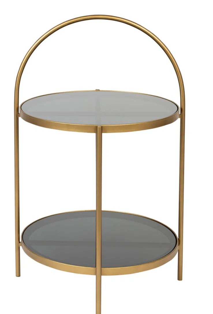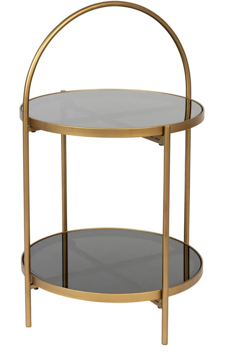 Der schwarz- und goldfarbige Beistelltisch EVE von zuiver zeichnet sich durch sein zeitloses Design aus und passt in modern oder klassisch eingerichtete Wohnbereiche. Durch die Kombination aus gehärtetem Glas und Metall ist der runde Tisch mit Ablage ein Blickfang, der zahlreiche Kombinationsmöglichkeiten bietet. Der schöne Tisch ist die ideale Ergänzung für eine Sitzecke oder kommt neben einem Sessel gut zur Geltung. Der Beistelltisch hat Charme und schafft eine wohnliche Atmosphäre.